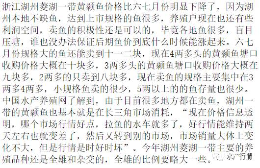 湖北市场黄颡鱼本地上市量也很大,武汉周边的、枝江一带的鱼都很多,因为是连续的高温天气,市场上流通的都是更耐高温运输的杂交黄颡鱼,今天武汉白沙洲市场上3两以上杂交黄颡鱼批发价大概在10.5元/斤,3两以下的批发价差距较大,一般在8-9元/斤,小鱼比例大的8元/斤都卖不到。塘口收购价格方面也是持续低迷,比七月份还要疲软,因为要卖鱼的养殖户很多,规格卖相再好的鱼,塘口收购价格也没有超过10元/斤的,枝江一带2两以上黄颡鱼塘口收购价格基本维持在九块出点头,估计个把月以内鱼价也很难有回升,市场价格便宜,收购商只能压价收鱼保证利润。这两年湖北省内黄颡鱼养殖规模大幅增加,尤其是杂交黄颡鱼的养殖量明显增加,到了卖鱼的时候,养殖户集中卖鱼导致鱼价下滑,好在现在高温天杂交鱼还能有人拉到外地去,高温天全雄黄颡鱼走长途损耗太大,很多水车老板根本不敢碰,估计到了温度九月份十月份,全雄黄颡鱼的流通情况会大大改善。湖南一带黄颡鱼价格比湖北还要低几毛钱,2两以上塘口收购价格差不多在9元/斤,主要是省内市场消耗为主,尤其是长沙市场消耗量最大,走外地的水车也没什么利润。