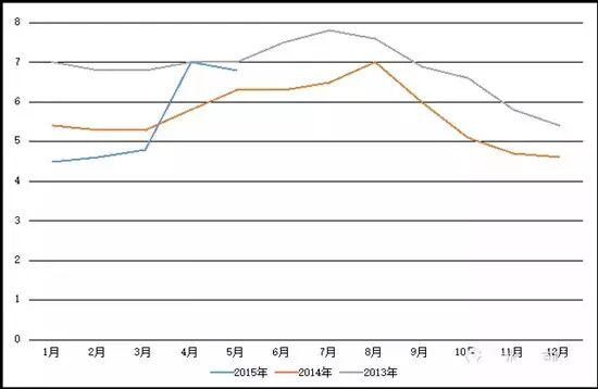 (1)草鱼病害近几年草鱼病害相对稳定,主要以草鱼老三病、出血病、寄生虫病为主,病毒性疾病发病率不高。从目前情况看,2015年草鱼病害显著低于去年同期。