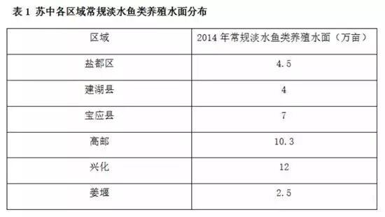 江苏中部区域包含泰州、扬州、盐城西部区域,常规淡水鱼类(草、鲫、鳊、鲢、鳙)养殖水面约40万亩,是华东常规淡水鱼类的主要养殖区域之一,各主要水产养殖大县养殖水面分布大致如表1。2各区域的主流养殖模式苏中区域常规淡水鱼养殖模式主要有三种:鲫鱼精养、草鱼精养以及草鲫/草鲫鳊混养。