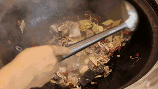 上桌煮沸就可以先将锅里的食材吃完后,另外再加牛骨、牛肉、牛杂,在涮其他菜品。