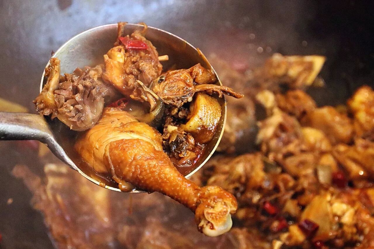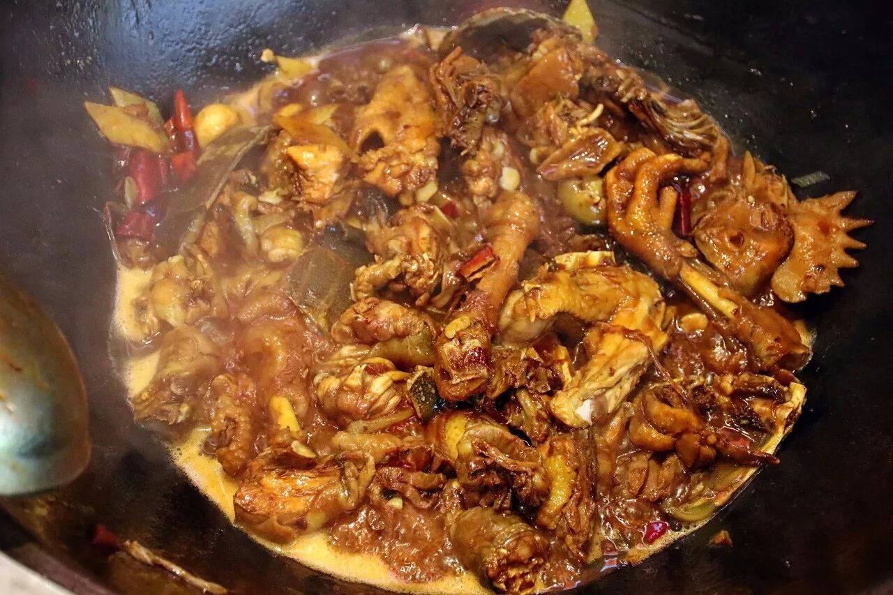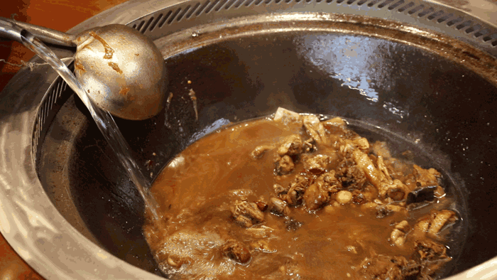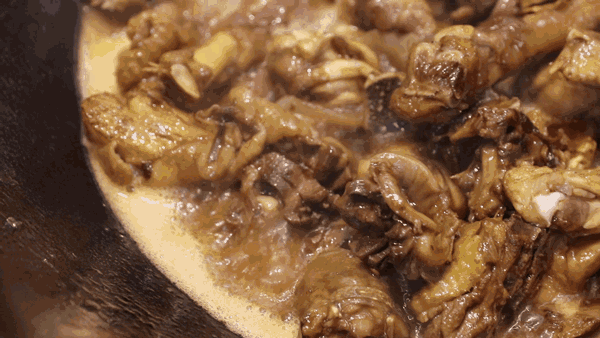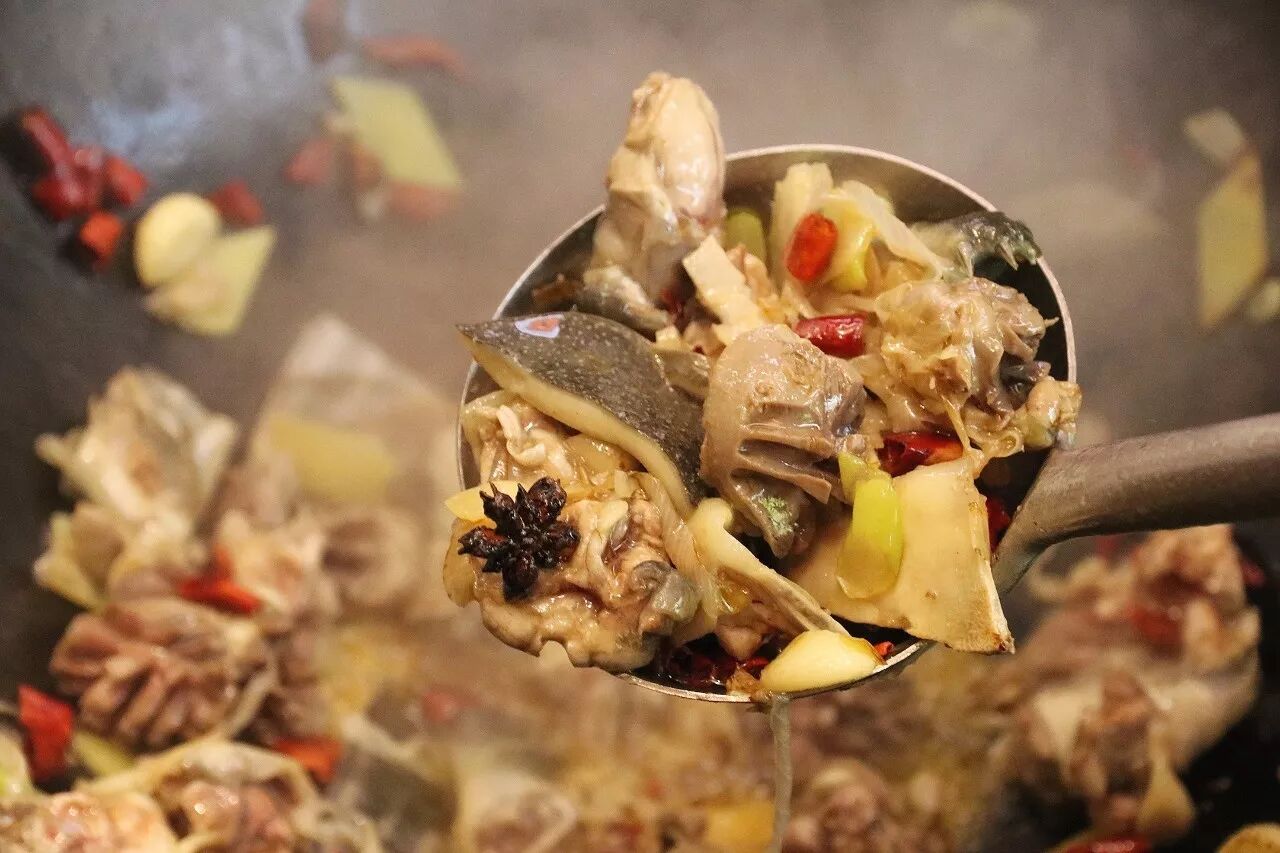 ③再放入秘制农家大酱,给鸡肉和甲鱼上色入味!