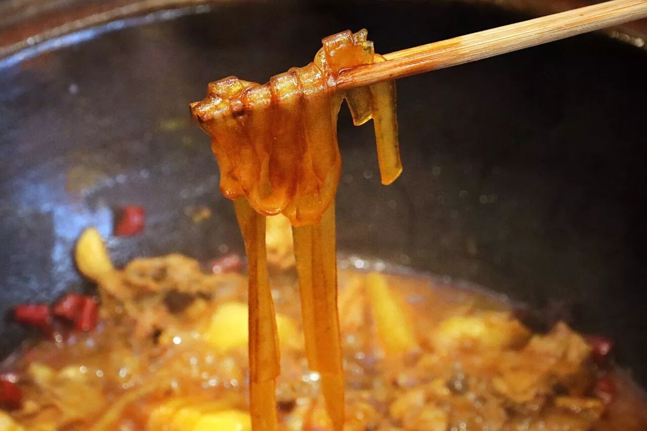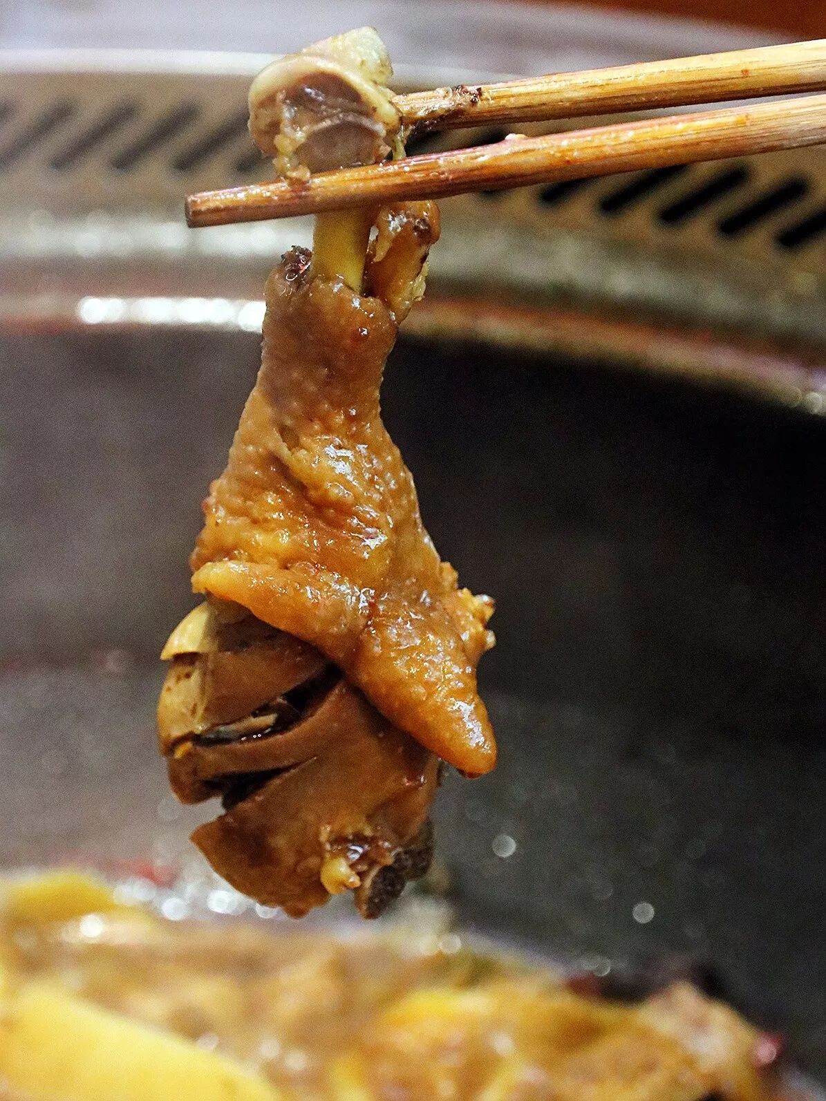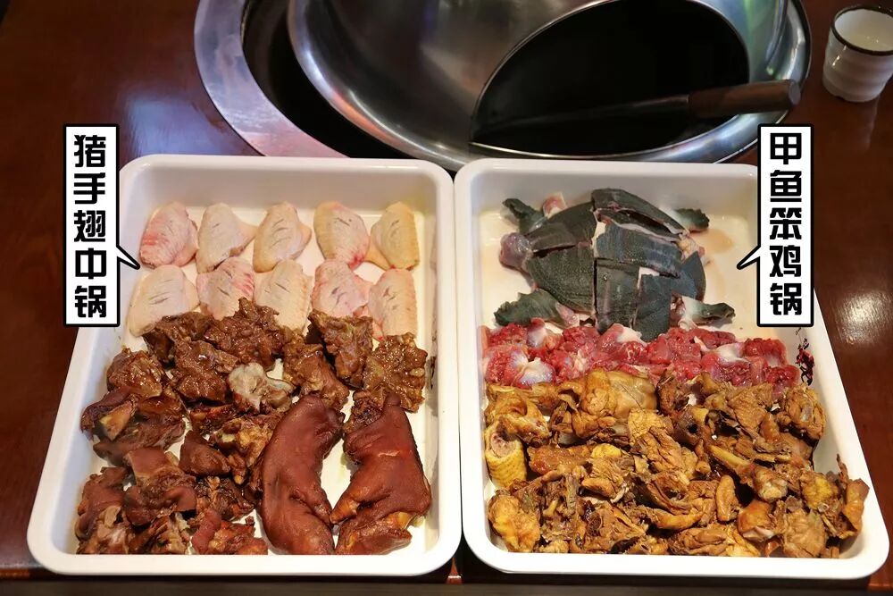 一开盖子大家就迫不及待的开吃了,鸡腿甲鱼被炖煮的十分软烂入味,粉条Q弹。乌黑锃亮的大铁锅,一桌配料,三五知己围着锅分享东北美味,简直幸福!