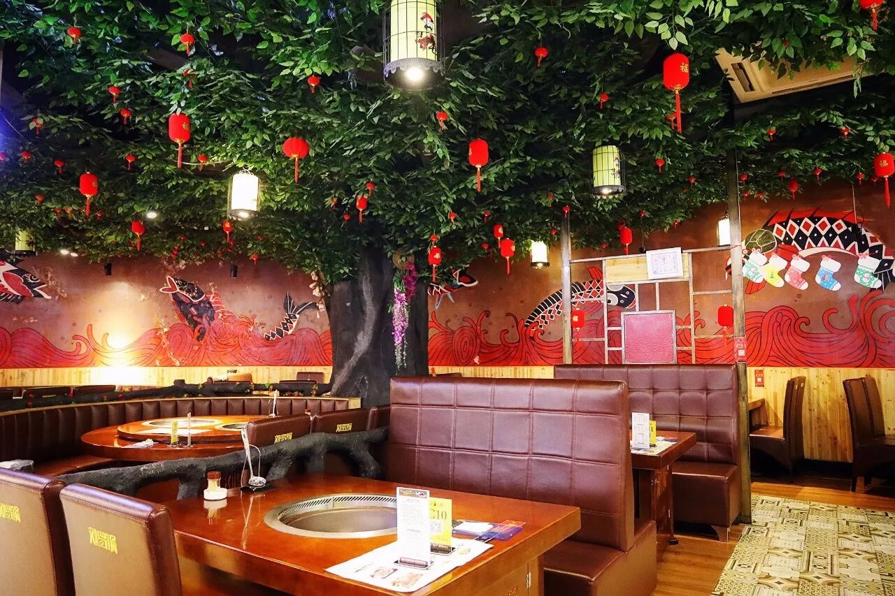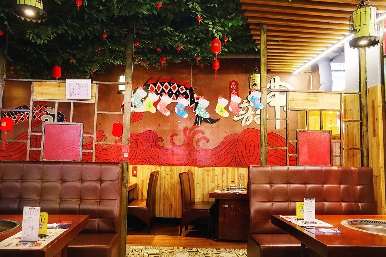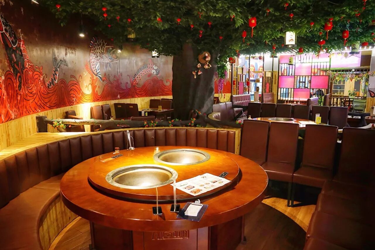 从墙面到桌椅采用中式与东北味道大胆搭配,墙绘也带着浓浓的东北风,还搬了一颗大树在餐厅中间,氛围立马变得不一样了!只有在这种环境下吃的铁锅炖才最有赶脚。