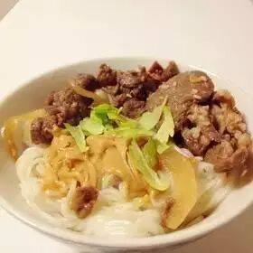 意大利面(3号细面)1人份、肥牛片1小碗、辣椒粉1勺、生抽3勺、老抽1勺、花椒 少许、醋1勺(喜欢酸点可以多放点)、糖1勺、葱姜蒜、花生碎、料酒