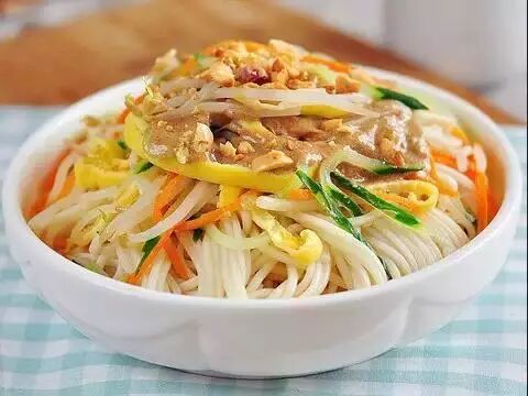 10.和面条,蛋丝拌在一起,吃的时候撒花生碎即可