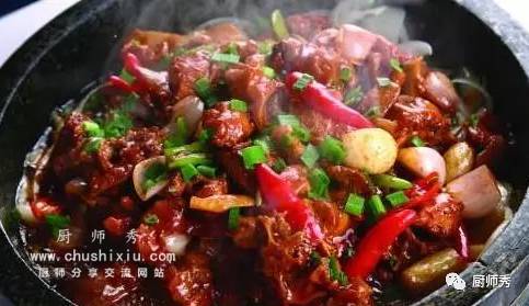 石锅一定要烧热后再放入炒好的泡菜鸡,听到“吱吱”直响时下入才能达到效果。
