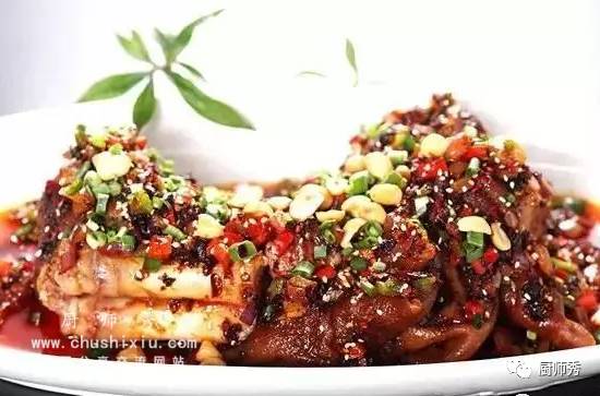 这是一道旺销菜,上桌点击率很高。在制作上,为了赋予猪蹄全新的质感,把猪蹄先经过炸制处理,再进行卤制和烧制,成菜具有味道香辣、外皮脆韧、内里软等特点。通常情况下,猪手经过油炸、卤制和烧制后,外皮的口感都是软的,而要想让表皮变得脆韧,关键还在于炸制的方式是否合适。