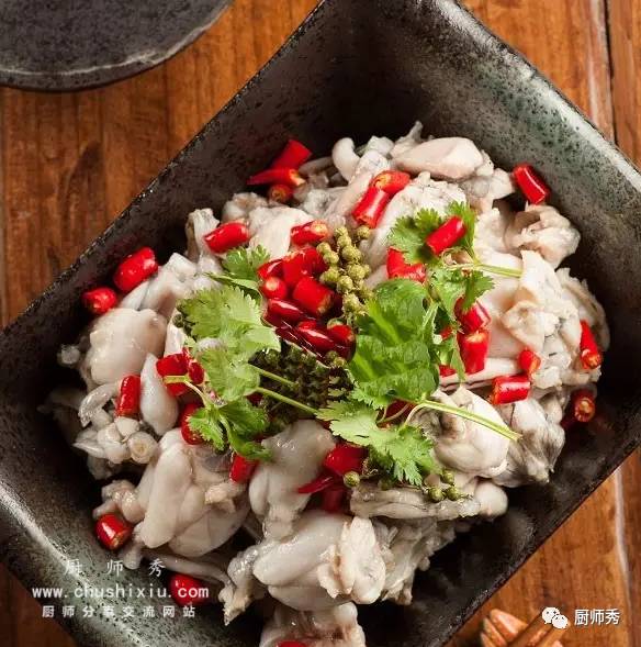 这是把自贡菜当中的鲜辣菜式与泡菜相结合创出来的一道菜。不仅蛙肉细嫩、风味别具,而且装盘形式也有点独特。