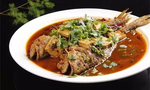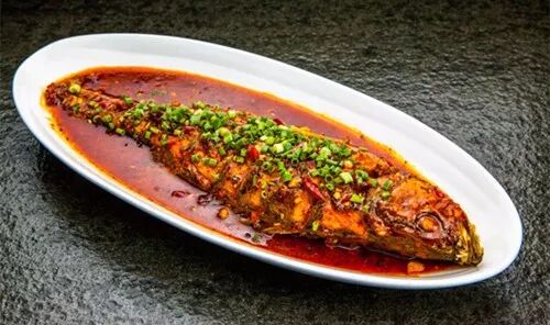 锅内留底油,炒香小料,再放入几片五花肉一起炒香,烹酱油,放入二汤、盐、白糖和鱼,一直小火烧制,待鱼肉九成熟时,我们再改旺火收浓汤汁,不勾芡,直接淋入葱油和花椒油即可出锅。