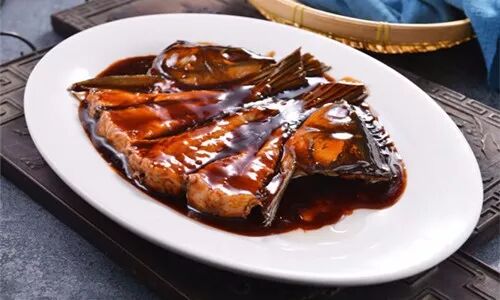第一种方法:净海鱼表面抹上一层老抽,油炸至其外皮发脆,捞出控油;锅内放入油,爆香小料,烹黄酒,下入海天草菇老抽、厨邦美味鲜酱油、白糖、米醋和白胡椒粉,下入炸后的鱼,倒入冷水,没过鱼身,大火烧开,改小火焖制鱼肉成熟,用湿淀粉勾芡,淋入葱油即可起菜。