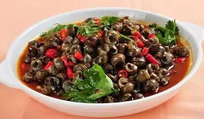 3、锅里油热,放姜,大蒜爆香,放入香螺大火快炒一分钟,加料酒,盐,2调羹甜面酱,加一点水,大火炒至汁收干,加葱花即可。