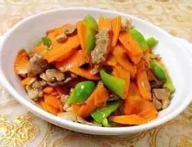 4、跟平常炒菜一样,炒葱姜蒜和胡萝卜,至胡萝卜变软变金黄,放入猪肝大火不停的翻炒三分钟左右,放入黄瓜条出锅加鸡精即可。