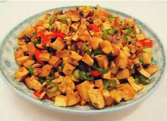 香干,猪后腿肉,榨菜,老干妈豆豉辣酱,葱,姜,红辣椒,盐,鸡精,糖,老抽