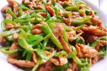 青椒,瘦肉,葱花,姜丝,盐,生抽,料酒,鸡精,生粉