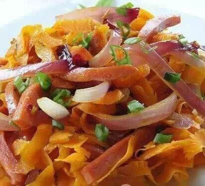 主料:猪肝,胡萝卜,黄瓜,调料:料酒,酱油,葱姜蒜