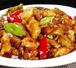 18.加入炸好的切条下锅翻炒,使每根切条均匀裹满料汁即可