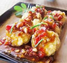 23.用小勺舀着炒好的芡汁淋在每个茄子上
