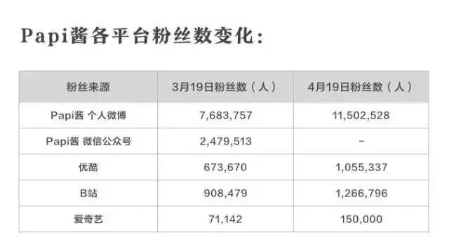 papi平均视频播放753万次,最好一期有2000万+,就按照2000万算好了,这种流量级别和播出平台做广告分账,大约是8万左右。当然不是所有平台都给钱,你自己去找广告主的话,可以把每个端口上的位置都卖掉,50万左右吧!