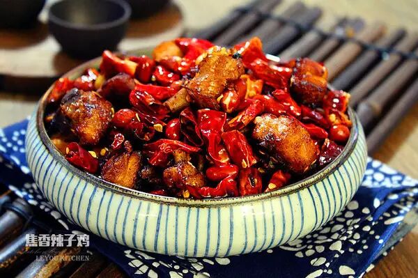 这道菜光看卖相,红红火火,似乎只剩下了鸡肉和辣椒。吃一块鸡肉,外酥里嫩、麻辣浓郁、唇齿留香。