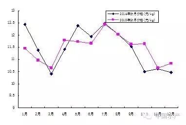 图3 近两年全国鲫鱼分月价格走势对比折线图 (单位:元/kg)