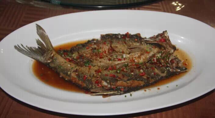 香煎鲌鱼:菜出锅后味道浓郁,扑鼻而来,夹起鱼肉,鱼层层分离,外面一层金黄金黄,放入口中酥酥脆脆,慢慢咀嚼,鱼的味道完完全全地锁于鱼肉中,加上姜葱蒜的香味与鱼香融在一起;里面一层晶莹雪白,放至口中鱼肉松软、鲜嫩,可谓油而不腻,连鱼刺都要放到口中吸干净味道才舍得扔掉。