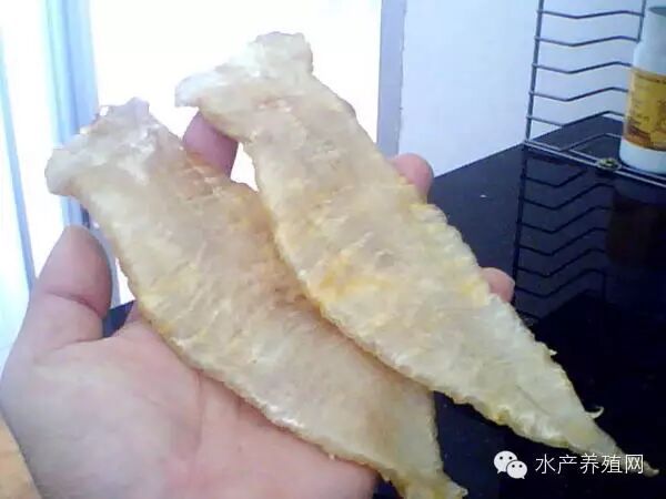 一直以来,潮汕地区附近海域是野生赤嘴鮸的主要栖息地,随着野生资源的慢慢减少,潮汕地区鮸鱼养殖也逐渐兴起,其中养殖最多的就是赤嘴鮸,另外在临近的东山县也有一些养殖规模,其余地区养殖量很小,一方面跟这些地方优质的水域环境有关系,还跟潮汕地区鱼胶消费量大有关系。一般来说,赤嘴鮸的优质周期是比较长的,养殖第一年只能长到四五斤,第二年能长到十多斤,第三年能长到十五六斤以上,但是一般养殖户习惯于在第二年卖鱼,“只养一年的话,规格比较小,卖不出好价钱,一些养殖户会因为资金困难等原因,也不会养到第三年,赤嘴鮸最贵的地方就是鱼鳔,虽然说重量越大不一定都能取出大的鱼鳔,但是重量小的取出大鱼鳔的几率是非常低的。一般来说,十七八条鮸鱼才能取出一斤左右的鱼鳔”。中国水产养殖网了解到,鱼鳔加工厂鱼胶的方法主要是通过风干、去鱼油等方法,一般有手工和机器加工两种方法,“加工鱼胶是个技术活,技术的好坏直接影响到鱼胶的品质,最终影响到鱼胶的售价,现在市面上出售的很多鱼胶更注重外形的美观,这都是需要专门的机器来进行后期外型上的处理,但是鱼胶的品质是不会变化的”。这几年鱼胶的价格相对比较稳定,大概在一斤两千元上下,这也是赤嘴鮸成品鱼价格稳定的关键因素,十斤重以上的赤嘴鮸每斤价格大概在十几块到二十块左右。除了取出鱼鳔加工鱼胶之外,赤嘴鮸的鱼肉也能卖出价格,大部分是被加工厂收购后做成鱼片出口,也有的是卖到市场上被消费者食用,在潮汕地区,赤嘴鮸育苗、养殖、饲料、成鱼加工销售都已经形成了产业链,在部分地区赤嘴鮸产业成了当地重要的经济支柱。