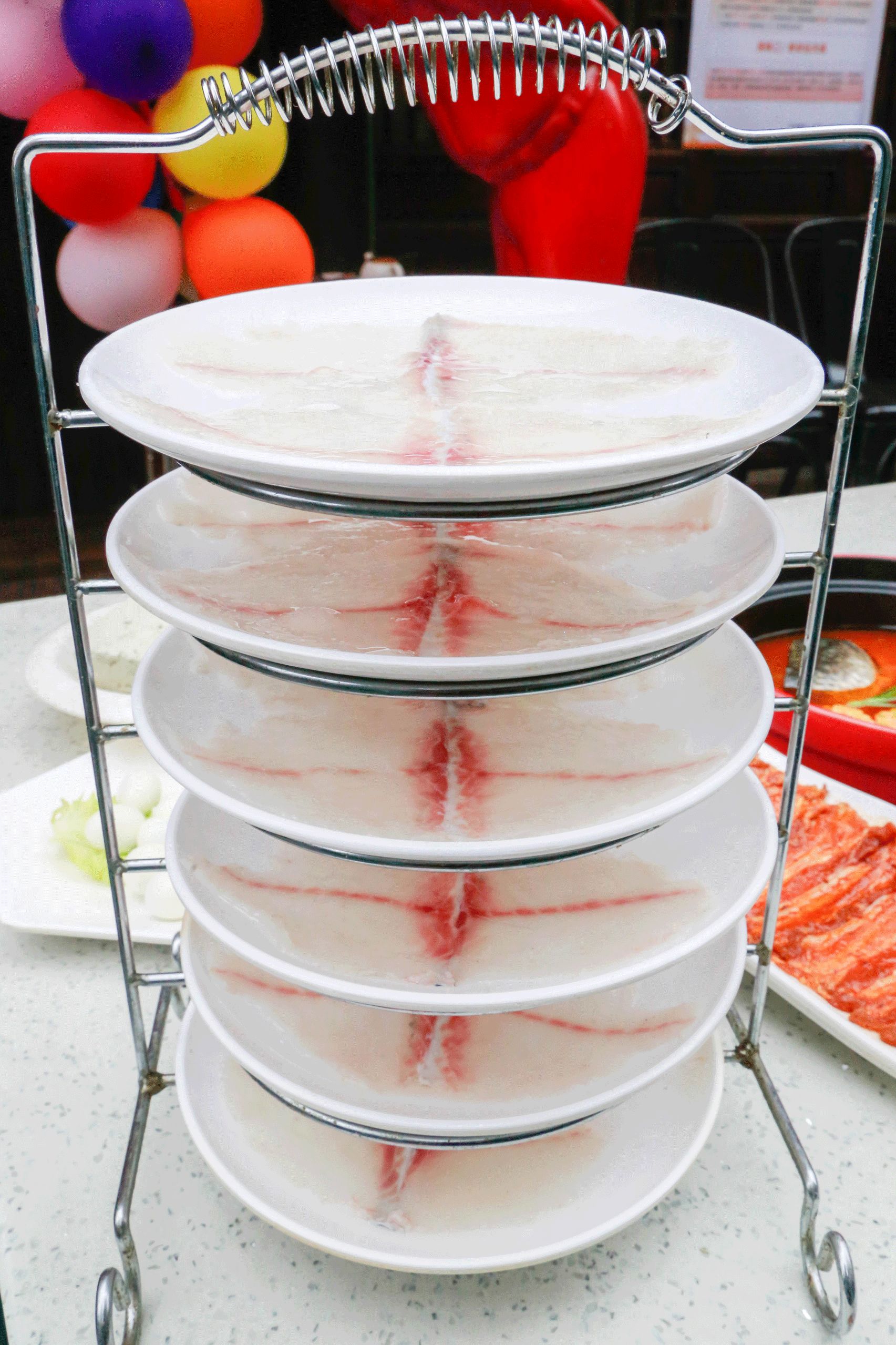 这家选择了丽江石斑鱼,切得薄如蝉翼,鱼片中的冈本,晶莹剔透超薄体验,给你的舌头零度触感。