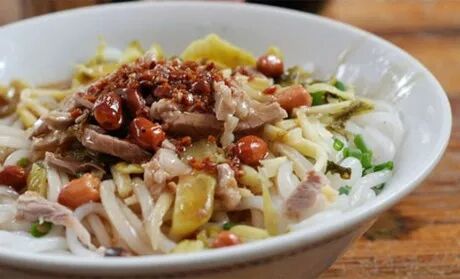 海南粉其白如雪,在制好的米粉上加上油炸花生米、炒芝麻、豆芽、葱花、肉丝、香油、酸菜、香菜等,最后再加上一勺香醇浓郁的汁。经拌均后其味醇香扑鼻,余味无穷。吃后再加上一勺用海螺煮的海螺清汤,更是鲜香无比。