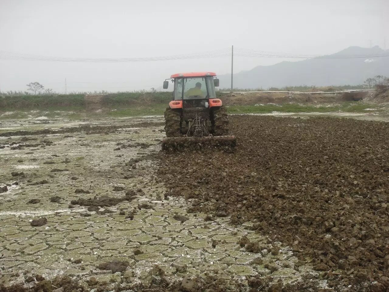 (4)翻耕:采用农用机械或者人工对塘泥进行翻耕,使生石灰和土壤混合均匀。池塘进水前,采用农用机械或者人工将土壤耙平压实。对淤泥不够厚的池塘可以在塘底补充有机肥,作为基肥。