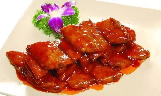 2、油的用量比较大,否则鱼容易炸散架。然后再用蕃茄酱和白醋、糖带少量的盐、勾芡汁,浇在炸好的鱼身上。