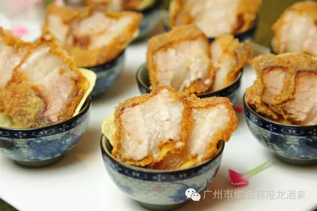 穗港龙以经典的粤菜为主打,乳猪全体、白切鸡等是每次婚宴的主角,新鲜生猛的海鲜、鲍鱼、龙虾成为必不可少的两点。而作为增城地区特色菜。在宴席中,鱼青丸、客家豆豉鹅等也登上了大雅之堂,让客人在婚宴中感受到本土的食文化。