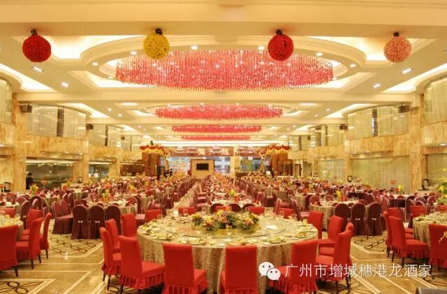 迈进穗港龙海鲜酒家的婚宴大厅,你就会被他那豪华的场面所震撼,拥有1500多个餐位,可设置100桌以上的婚宴宴席。酒家专业的婚庆团队,可为新人提供婚庆全过程的布置、策划,并根据新人的要求、习俗进行设计,包括中式、西式或中西结合。在婚宴大厅,最抢人眼球的是天花板上闪亮的水晶吊灯,红色的搭配装饰,让闪亮的吊灯为大厅增添了许多喜庆。,可随宴会进行过程播放新人love的视频。婚礼现场的布置同样引人注目,五层高的蛋糕,清澈范金的香槟酒杯、宾客桌上精致礼糖、浪漫诱惑的鲜花、气球布置等。在鲜花制成的拱门与舞台之间,一条长长的红地毯相连,当美妙的音律和宾客的欢呼响起,射灯指引着新人步入礼堂,一步接一步,寓意着步入甜蜜的幸福生活。