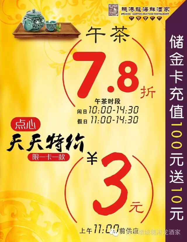 酒家预付卡充值100元送10元