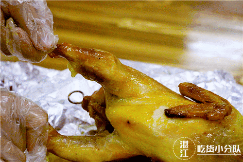 整只鸡油光金黄,昂首挺胸的样子,看着就忍不住口,秘制酱料腌制使其更加入味,必须先尝为快!在美味面前根本没办法做到怜香惜玉,拿住旋转,一只诱人的鸡腿就轻松扯下,肉汁滴落下来,真是恨不得连手套都吸干净。