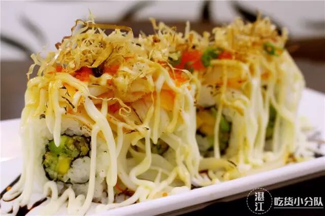 先来份浮夸卷?帝皇蟹铺面,颗粒分明的米饭将青瓜和牛油果紧紧拥抱,天妇罗碎散落在被火焰炙烤过的皇帝蟹上面,姿态诱人~经过炙烤的它,入口即化,芝香浓重,无论口感还是味道都超棒的!