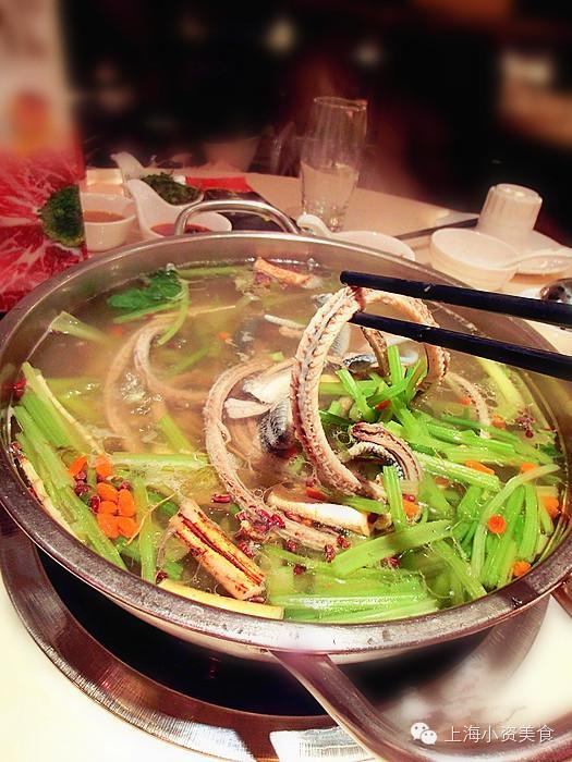 店名之所以有个“谦”字,是因为这家火锅店的老板正是著名歌手薛之谦,在吃货圈早就名声远扬了。店内独特的蓝色空间,仿佛要带你开启一场梦幻之旅。“上上谦”的特色在于很多食材都是串起来了的:一来在煮的时候,食材不易散化;二来吃的时候也极为方便。据说他们家的食材均是从成都空运过来的,绝对新鲜。秘制系列的肉类都很嫩的,口感一流。
