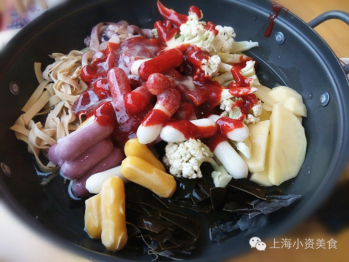卖的是韩国的年糕火锅,店老板是一位来自韩国的阿姨,火锅里的很多配菜都是阿姨自己做的,在韩国吃是什么味道,在这里就是什么味道,而且一锅只要37元,可以说是超级便宜。