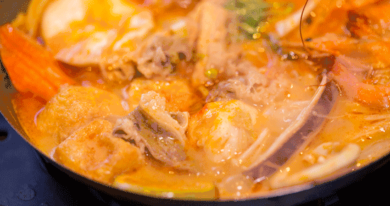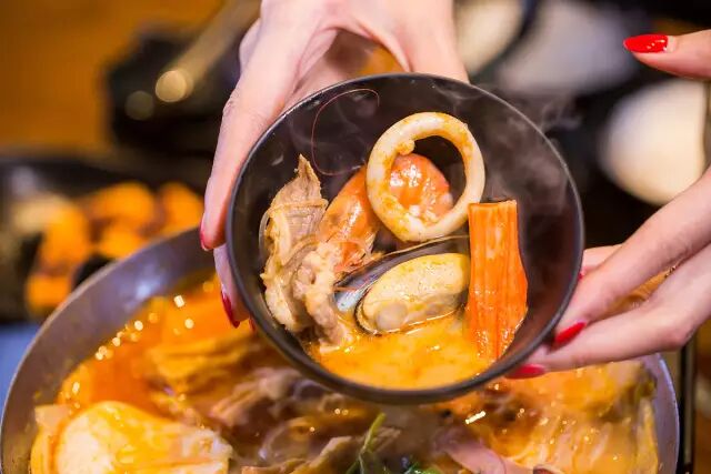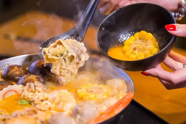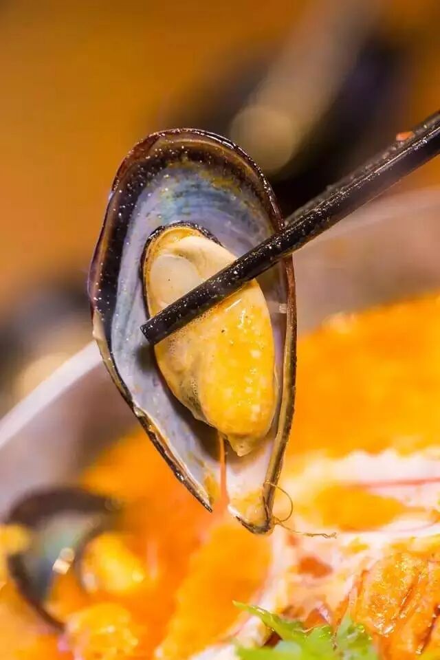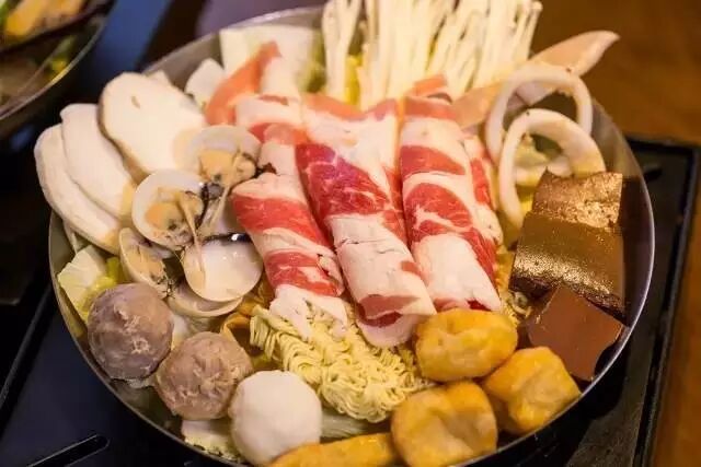 海鲜搭配各种肉类,令锅底鲜而浓厚