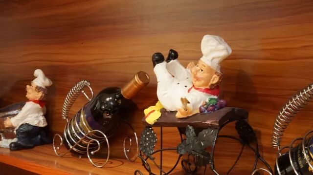 店家的展示柜上放了很多具有艺术感的酒瓶