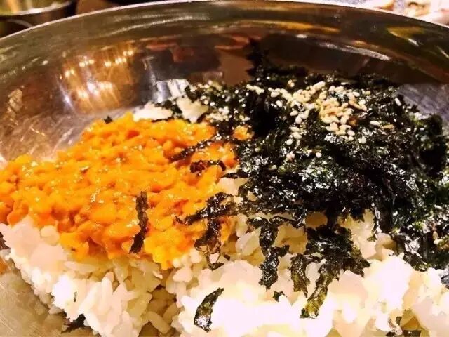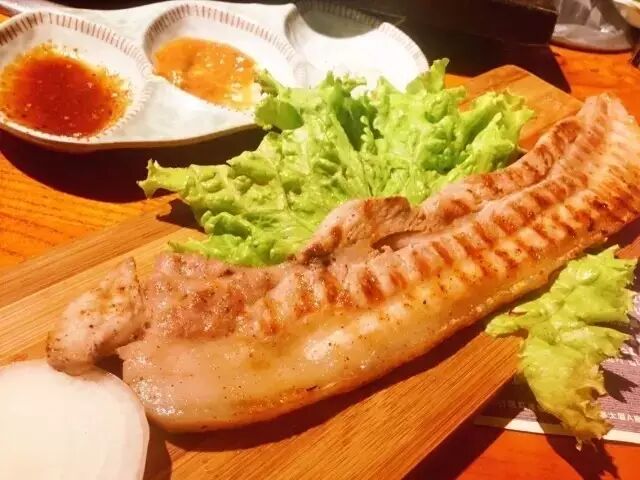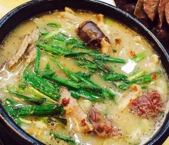 之前是寻觅传说中的正宗米肠汤去的。来了才发现这里的老板确实是韩国人,客人也清一色是操一口棒子话的韩国欧巴,看来做得非常地道。点了这里的特色米肠汤饭,滚烫着端上桌,汤内有粉丝塞的米肠、猪肉、猪耳朵等零零总总,有实料,放些韭菜进去也不错。桌上还有其他两种酱料,热乎乎的和着一口口饭吃很惊喜,算是发现新大陆了吧。