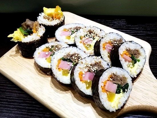 說起韓國美食怎麼可以少了紫菜包飯(Gimbap)呢?有原味、肥牛、泡菜和芝士口味選擇。饀料則有火腿、菠菜、蘿蔔絲、酸蘿蔔、煎蛋和芝麻,一份十件,最適合跟朋友一起分享。
