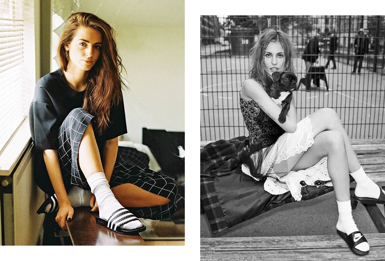 也可以像奚梦瑶一样穿双袜子,上演时髦澡堂拖鞋2.0版本~