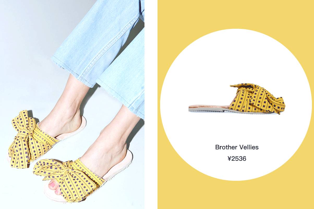 除了Fenty By Rihanna的缎面蝴蝶结拖鞋,Brother Vellies的帆布蝴蝶结拖鞋也非常特别。