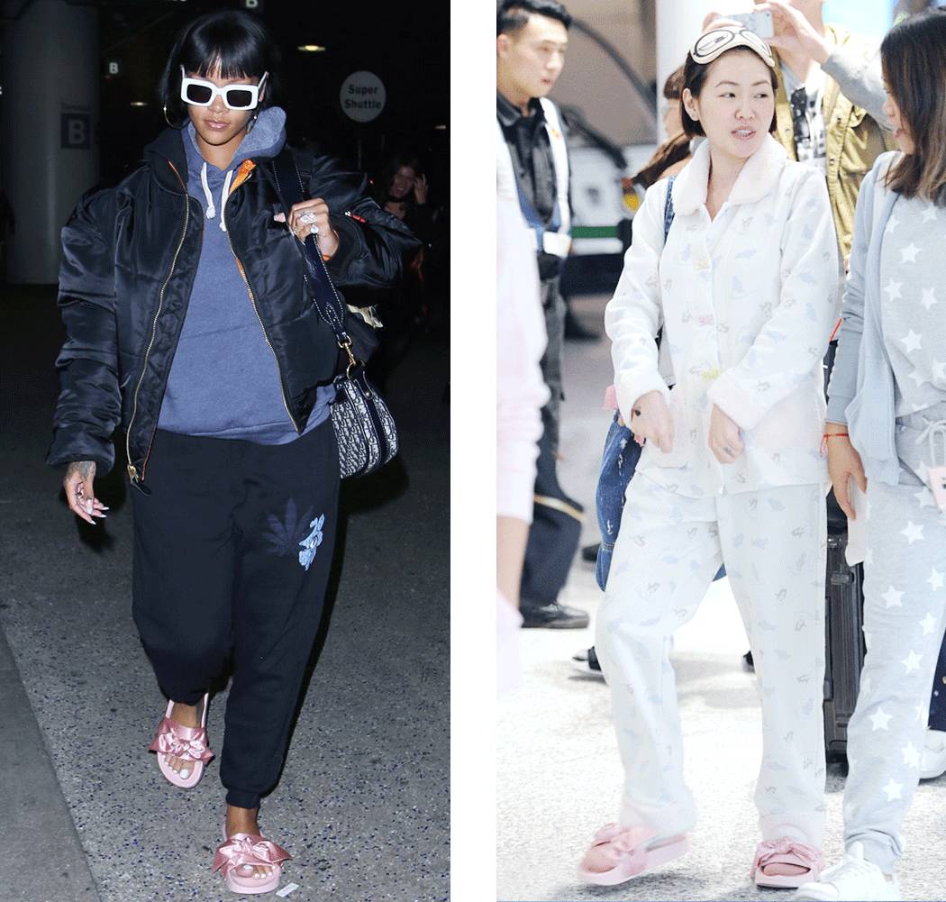 蝴蝶结拖鞋的流行,又是因为Rihanna也做了不少贡献。下一款设计Rihanna应该会直接踩一双鞋垫就出街吧!