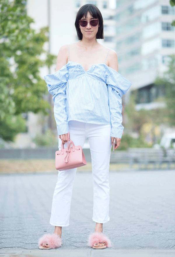 当然你还能选择羽毛拖鞋,今年很多品牌都推出了这种轻质毛拖鞋。