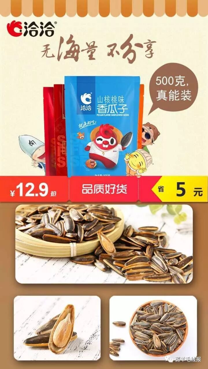 【洽洽】大颗粒多口味瓜子500g 国民老品牌4.9高评分,儿时的味道,四种口味,大分量500g分享装,颗粒均匀,个大饱满,颗颗入味,粒粒香脆,可以领3张券多买哦!!! 领5.00内部券,券后【12.90元】 领券下单: https://s.click.taobao.com/nyDRqYw 查看商品:复制这条信息[url=]¥WsA80TfU1b7¥[/url],打开☞手机淘宝☜即可查看并下单!