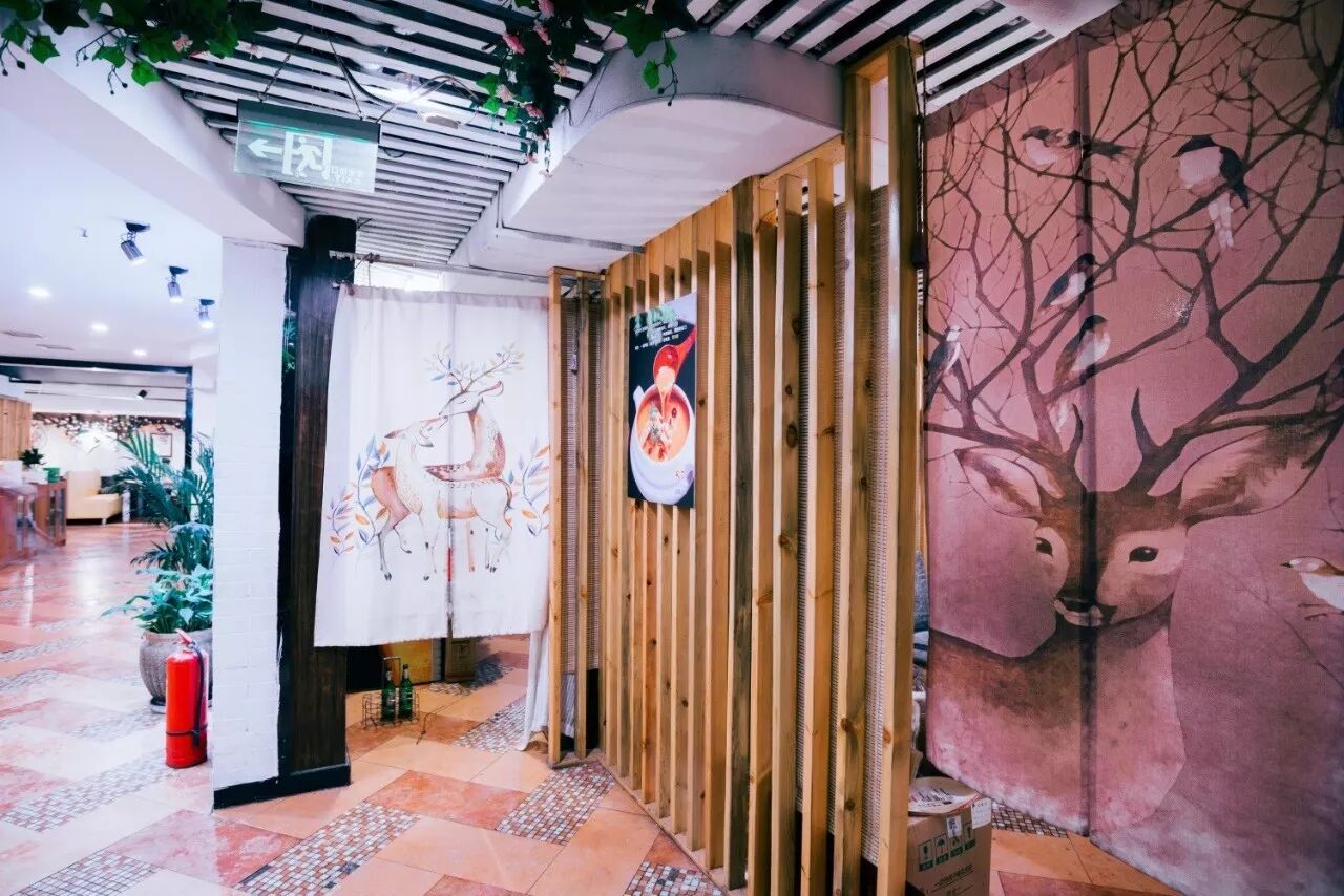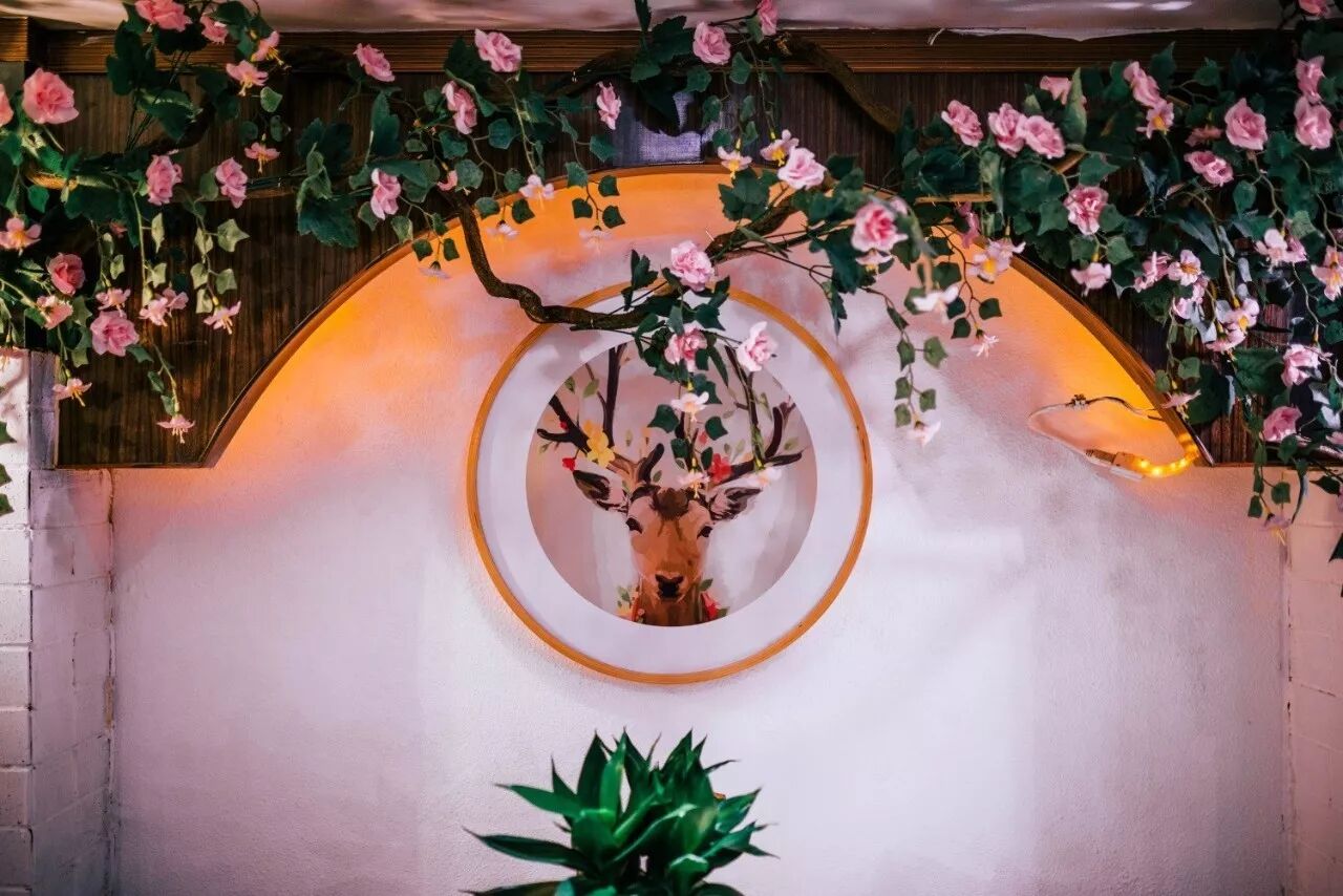 粉色与木质原色的搭配,加上麋鹿的童话效果,给这家店带来一种难言的静谧与舒泰。