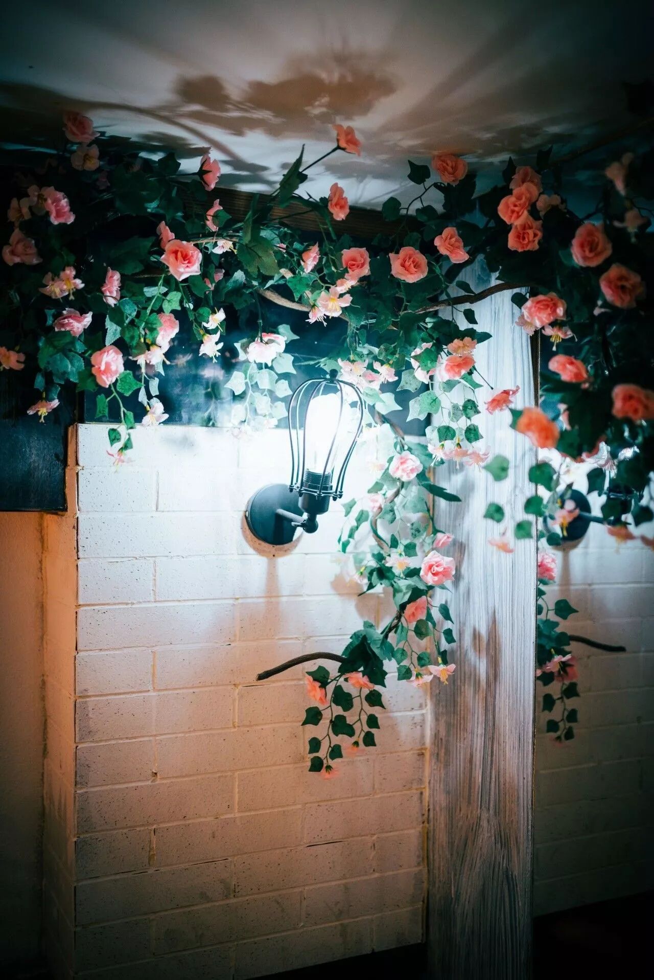 四周墙壁枝枝蔓蔓延伸着樱花,馣馤逴荦。只是观看就觉得是一种难求的享受。