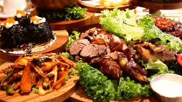 原味猪蹄+辣拌猪蹄+西番莲果蔬沙拉+飞鱼籽紫菜包饭+拌冷面+炸薯条薯角