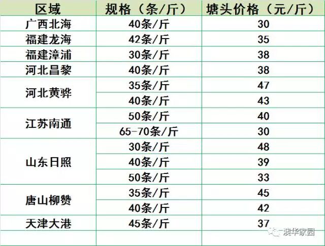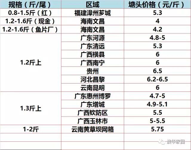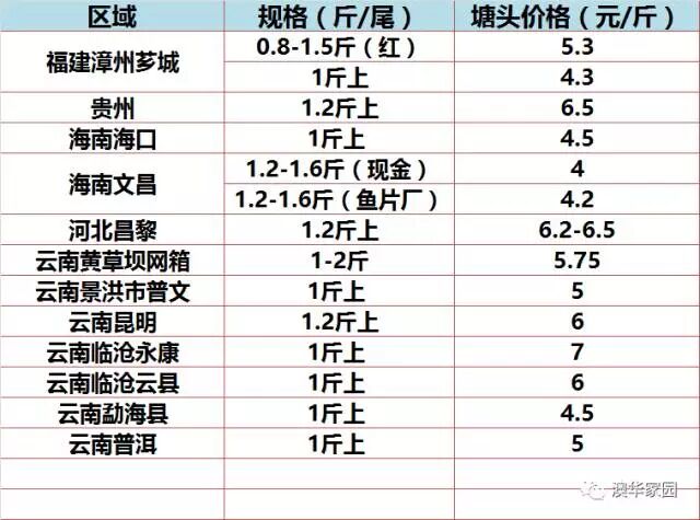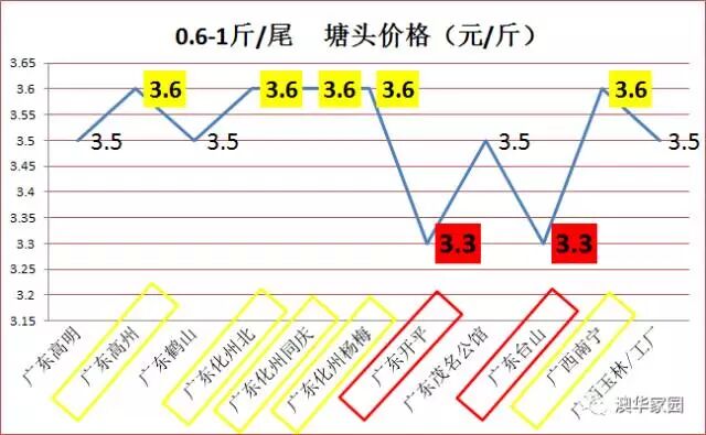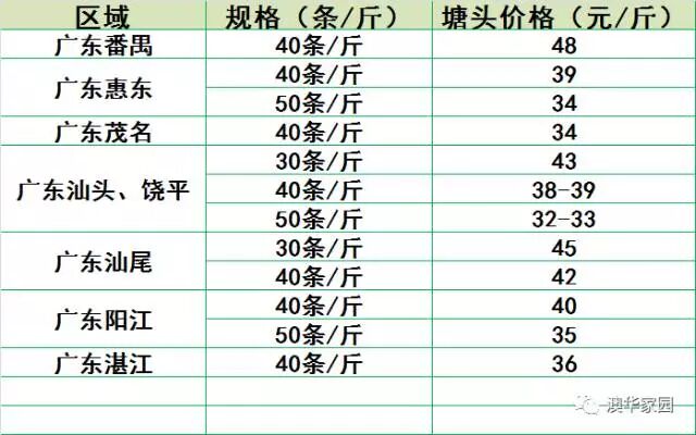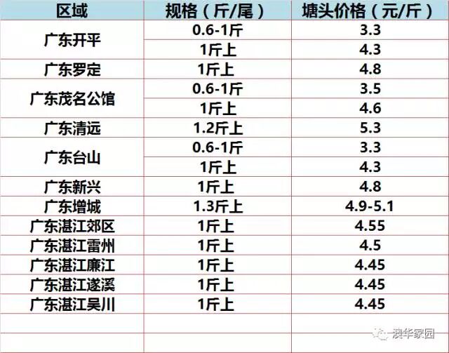 最低出塘价:广东开平、台山、漳州芗城4.3元/斤